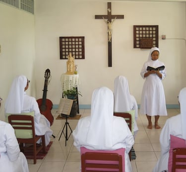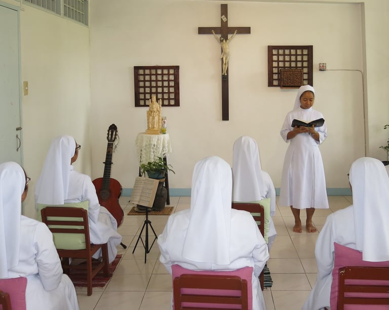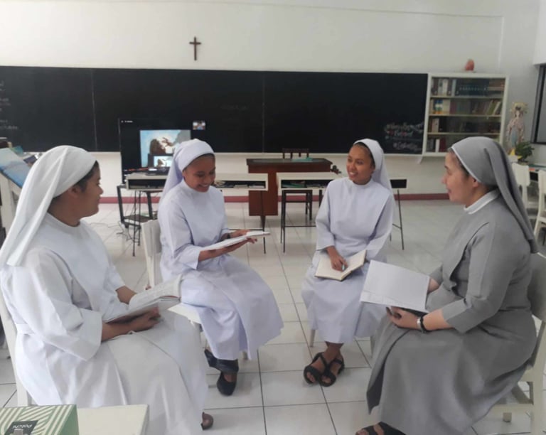 As the aspirant slowly becomes aware of what it means to respond to God, leave everything, and radically follow God in her day-to-day life in community, she is helped to adjust her coming from the world to another lifestyle through group dynamics and one-on-one accompaniment. It is hoped that at the end of the Aspirancy, the aspirant will attain a sufficient degree of human and Christian maturity which will enable her to be more at ease in relating with God, herself, and with others and prepare her for the Postulancy.