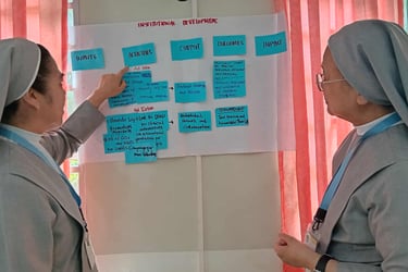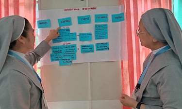 The second day began with the celebration of the Holy Mass, reminding us to anchor our being in Christ—the source and goal of our mission. Mr. Xavier Alpasa, fondly known as Prof X, facilitated a workshop using the Theory of Change. This guided the Pastoral Ministers in discerning the desired transformation in our ministry, reflecting on the inputs, activities, outputs, and outcomes of our mission.